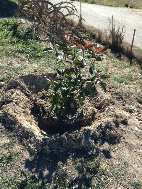 First plants planted, Pomegranate and Photinia, the first of many!…